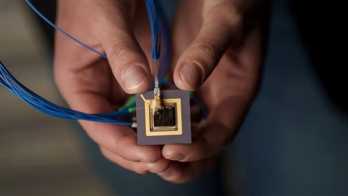An MIT PhD student built a 3D printer that fits in your palm using tiny chips that shoot holograms into resin. Instead of printing layer by layer, multiple laser beams intersect inside the liquid and cure entire objects instantly wherever the light patterns overlap.
