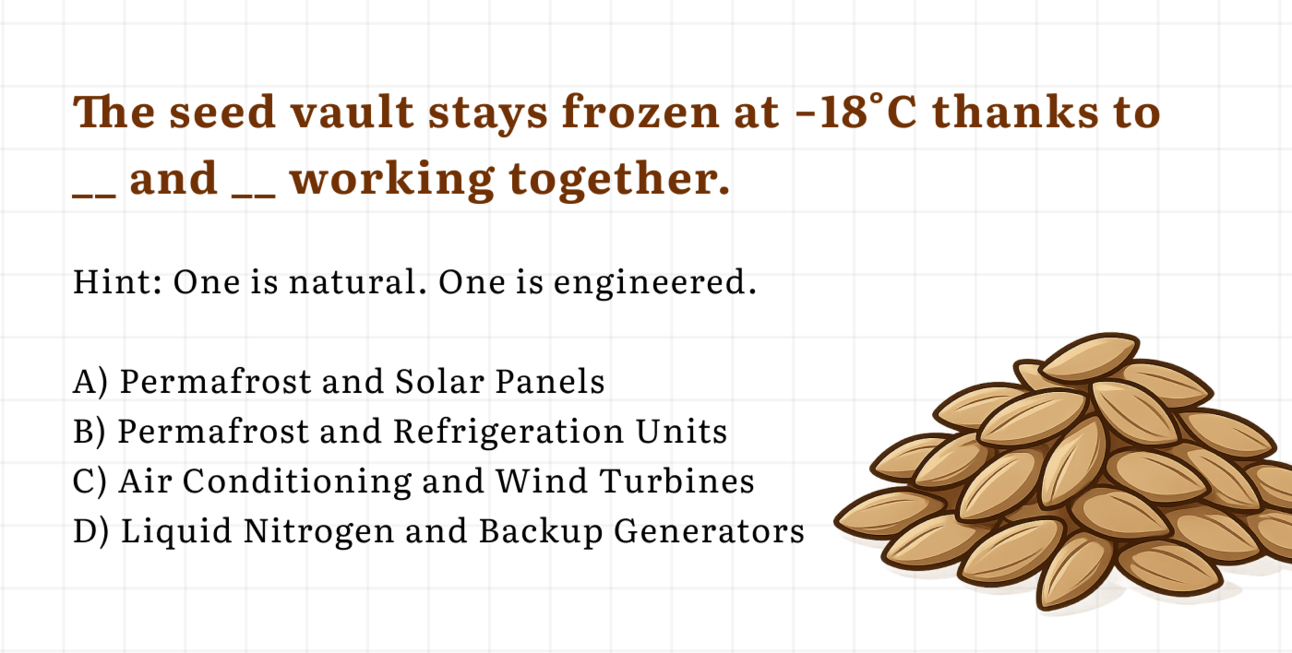 "Build a storage facility that keeps seeds alive for centuries, survives nuclear war, withstands earthquakes, and works even if civilization collapses. Oh, and it has to run itself."