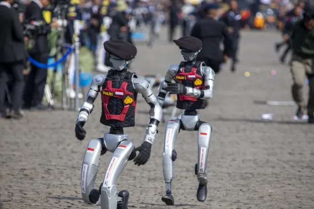 During a parade in Jakarta, they showcased 25 robotic officers complete with police uniforms and black berets. These bots use cameras for facial recognition, sensors for navigation, and chemical detectors for bomb disposal - basically a walking crime lab.