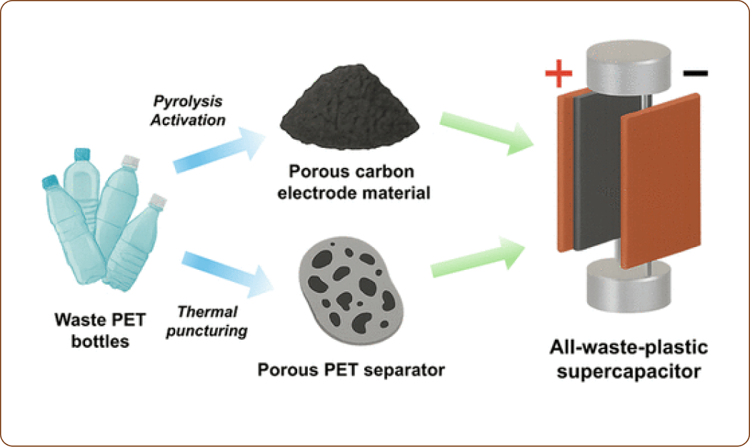 Researchers just figured out how to turn water bottles into supercapacitors: devices that charge and discharge energy fast fast. And we're not talking about melting them into park benches. We're talking about converting PET plastic into actual working energy storage.