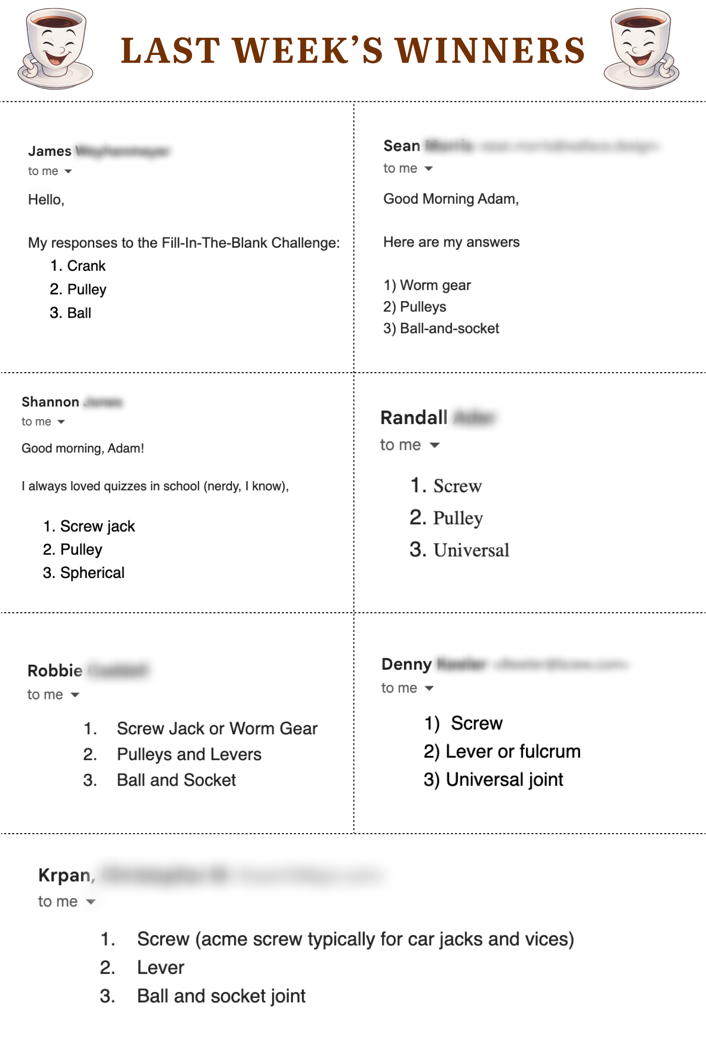 Last week’s winners are: